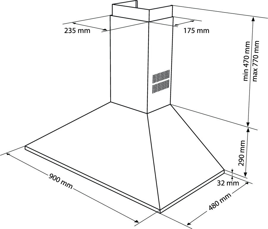 - Đường kính ống thoát: Ø150 mm (khuyên dùng để đạt hiệu suất hút tốt nhất và giảm tiếng ồn).