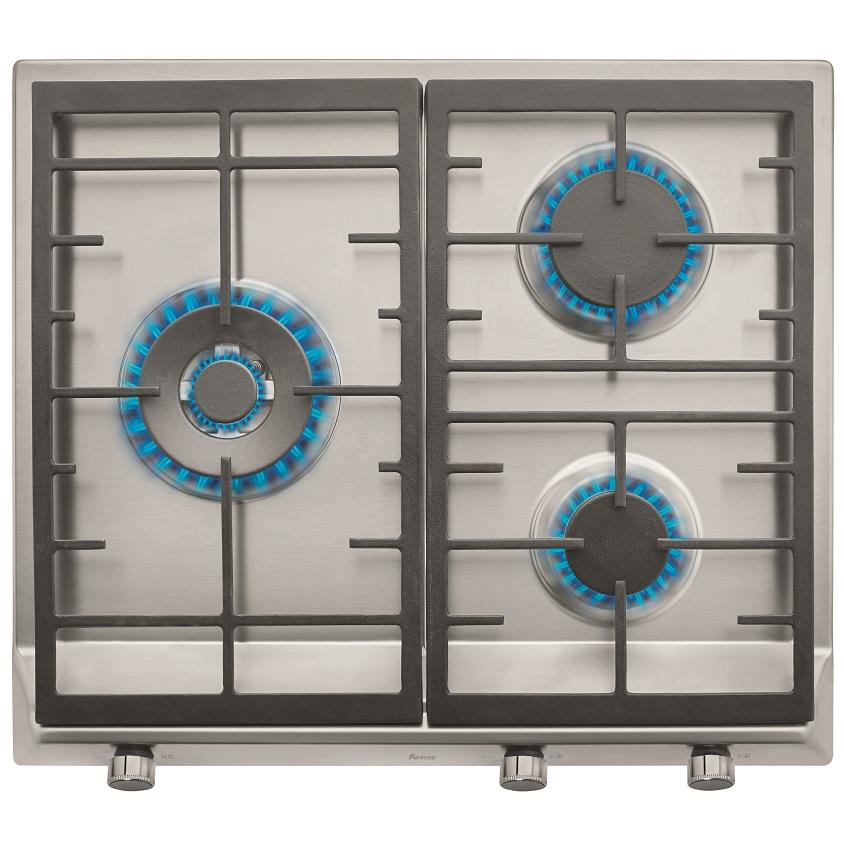 - 03 mặt bếp nấu: 02 bếp 03 vòng lửa công suất tối đa 4.3 kW, 01 bếp công suất tối đa 1.1 kW