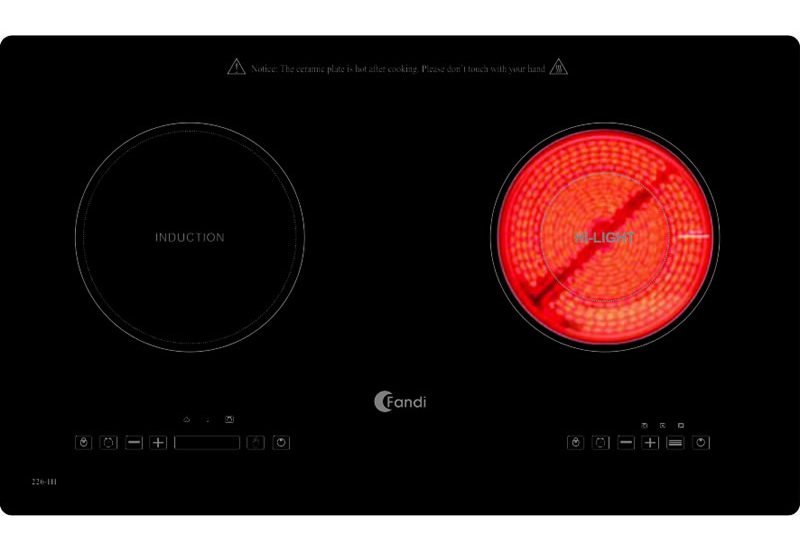 - Bếp hỗn hợp 01 điện + 01 từ.