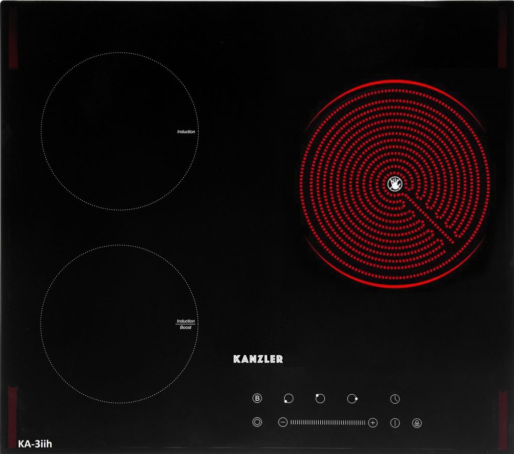 Bếp được thiết kế bằng cảm ứng điện từ trượt Slider, mặt kính CERAMIC nguyên khối vát cạnh