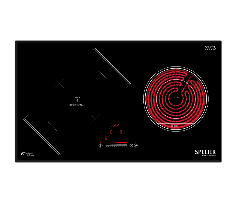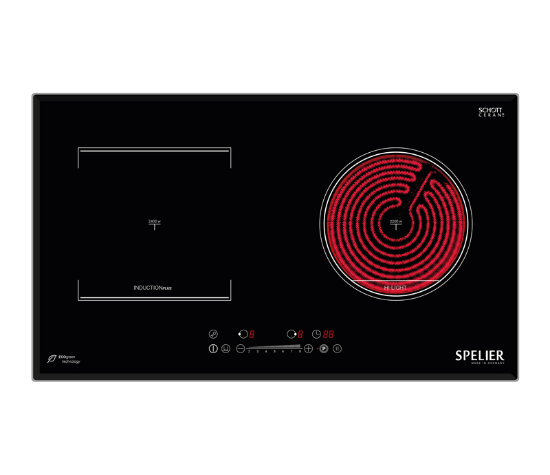 • Tiết kiệm năng lượng với công nghệ cảm ứng hiện đại• 2 vùng nấu riêng biệt+ Một vùng nấu điện công suất: 2200W+ Một vùng nấu từ công suất: 2200W• Hệ thống điều khiển điện tử “Slider Control”• Mức công suất lựa chọn (0-9)• Chức năng hẹn giờ trên mỗi vùng nấu• Cảnh báo chỉ số điện dư cho từng khu vực nấu ăn• Khóa trẻ em• Mặt bếp làm bằng kính Ceramic siêu bền• Thiết kế Frameless• Kích thước khoét đá: 70,0* 41 cm (W x D)• Kích thước bếp: 73 x 43 x 7,5 cm• Điện áp cung cấp: 220- 240 V• Công suất bếp: 4400W• Cầu trì bảo vệ: 2x16A• Trọng lượng: 7,5kg• Tổng trọng lượng: 8,7kg