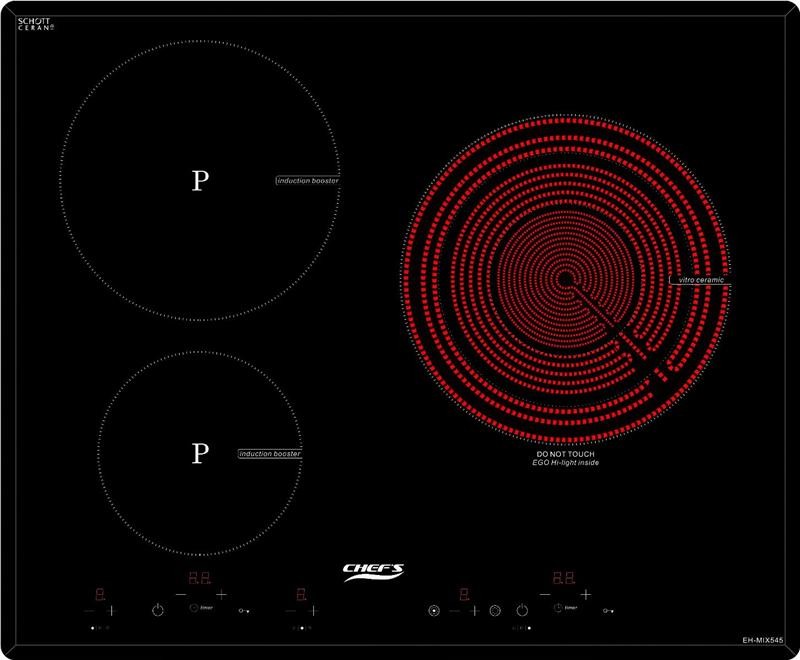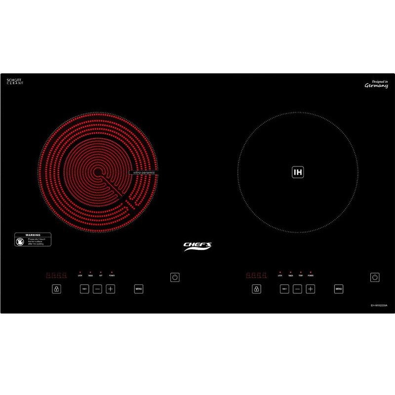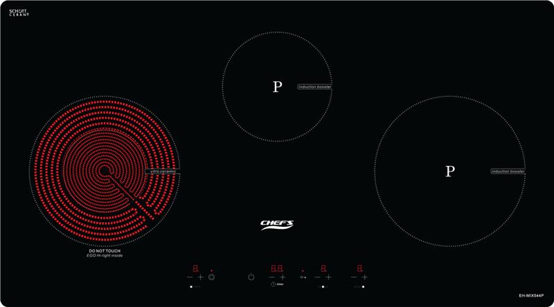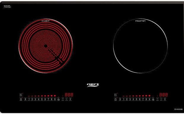 Bếp hồng ngoại Chefs EH-HL64 gồm 4 vùng nấu với với tổng công suất chia sẻ là 5400W. Vùng nấu hồng ngoại trái trang bị mâm nhiệt E.G.O Hi-Light với 03 vòng nhiệt có công suất làn lượt là 2200W - 2200W -1400W -1400W giúp người nội trợ nấu ăn nhanh, tiết kiệm đáng kể thời gian vào bếp.