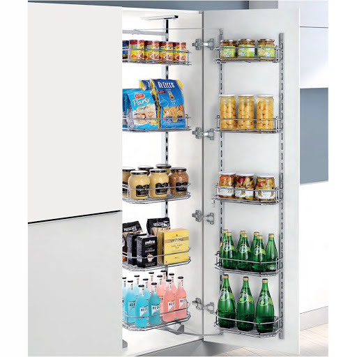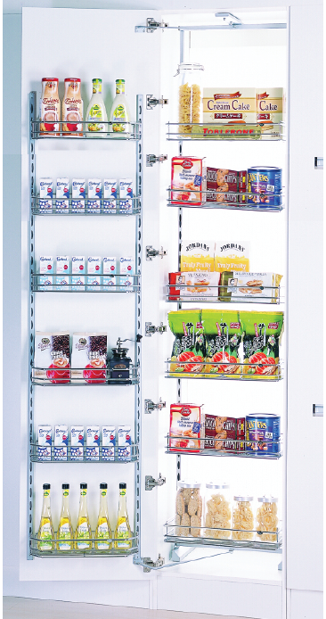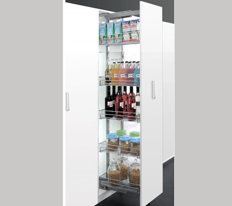Đi kèm là ray âm giảm chấn Angas giúp cho việc di chuyển kéo ra vào trở nên dễ dàng và thuận tiện. Giá đa năng gắn liền với cánh nên chỉ cần một thao tác kéo đơn giản. Các khu vực được thiết kế để chai lọ, dao thớt, các loại hộp riêng biệt rất vừa vặn, giúp người nội trợ dễ dàng sắp xếp và dễ dàng nhìn thấy. Đây chắc chắn là một không gian lưu trữ sạch thoáng, chống ẩm mốc, mối mọt, đảm bảo vệ sinh, sạch sẽ. Ray trượt êm ái và nhẹ nhàng, đảm bảo độ chính xác và hoàn hảo, độ bền vượt trội vượt qua thử nghiệm 50.000 lượt hoạt động