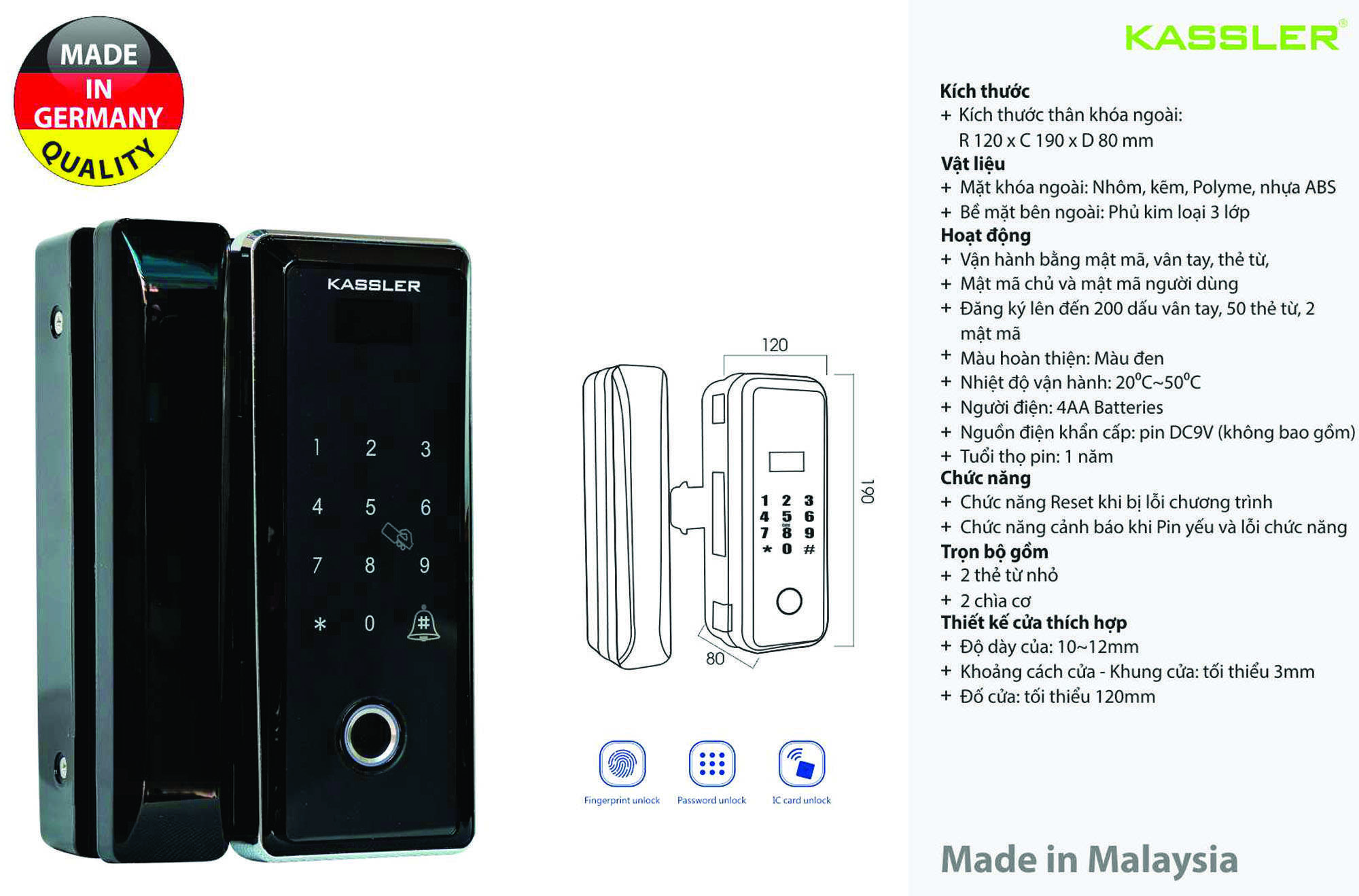 Đặc tính sản phẩm của khóa vân tay Kassler KL-858